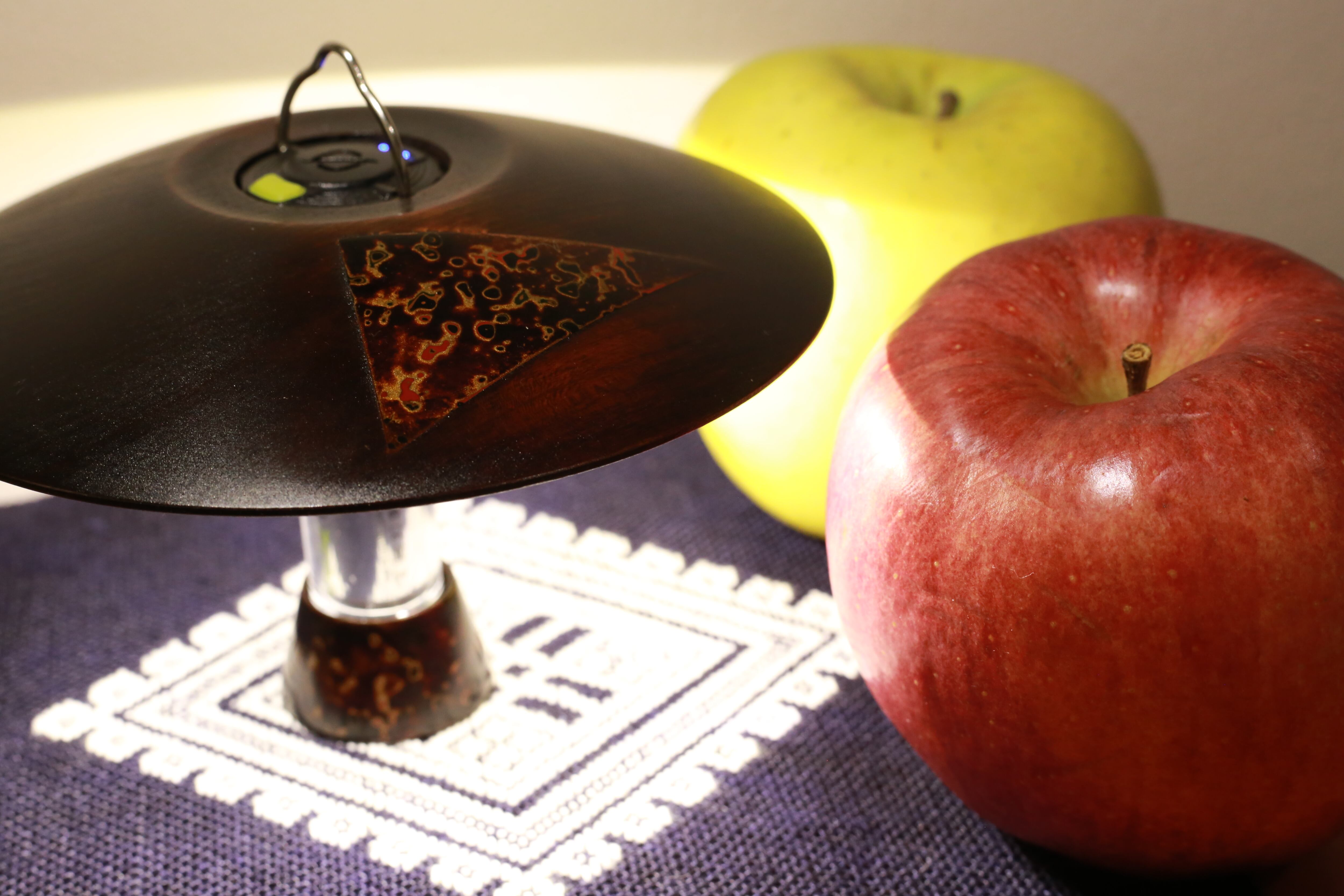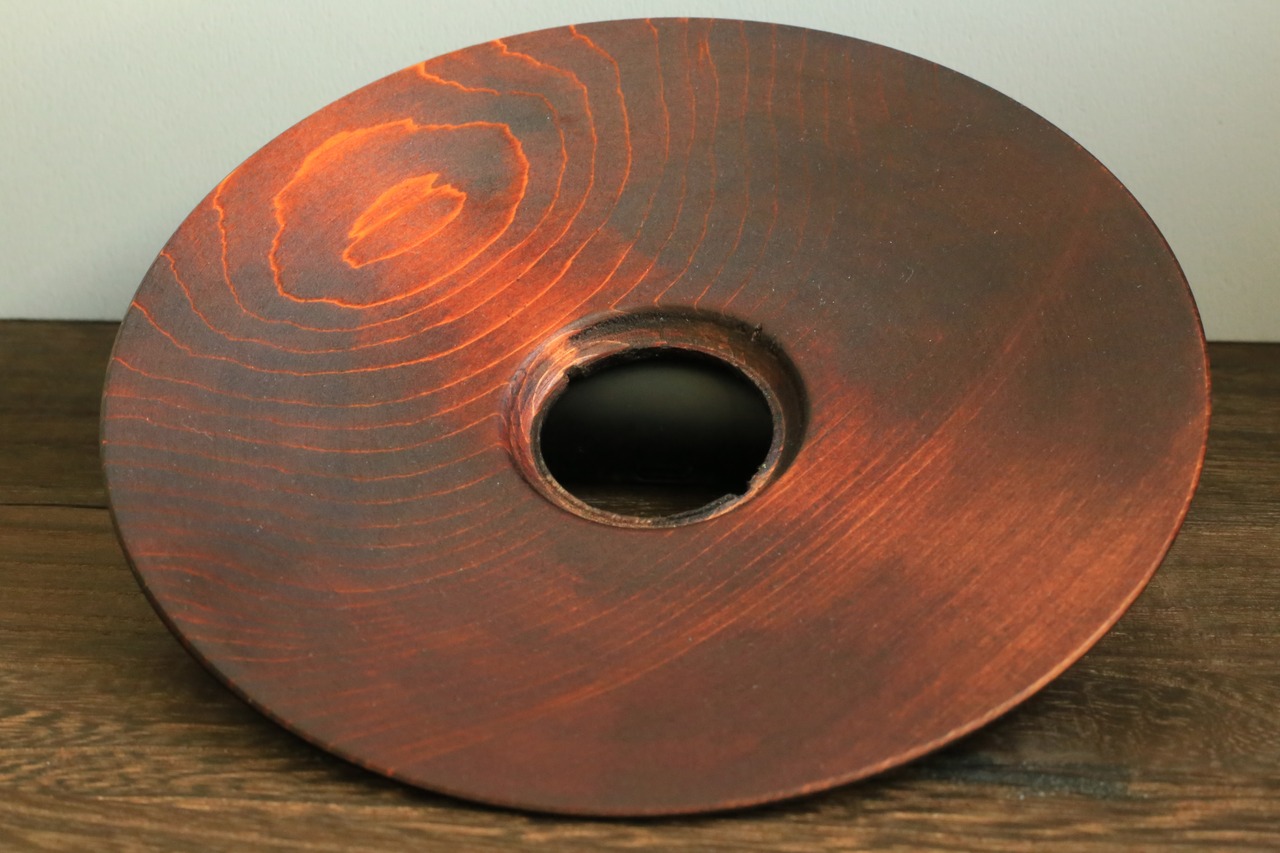 津軽塗には代表的な4つの塗りの技法があり、本作品の表面にはその内の一つである“唐塗り”一部施し、表面、裏面には摺り漆という技法で木地の表情を残し木目を楽しんで頂けます。